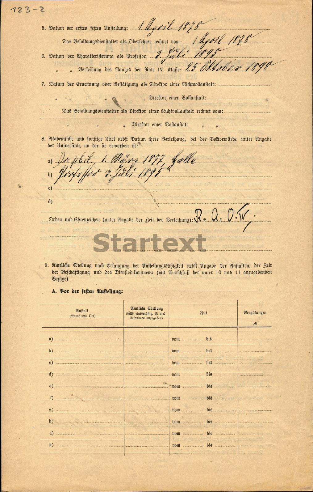BBF/DIPF/Archiv, Gutachterstelle des BIL - Personalbögen der Lehrer höherer Schulen Preußens