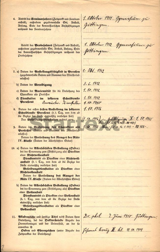 BBF/DIPF/Archiv, Gutachterstelle des BIL - Personalbögen der Lehrer höherer Schulen Preußens