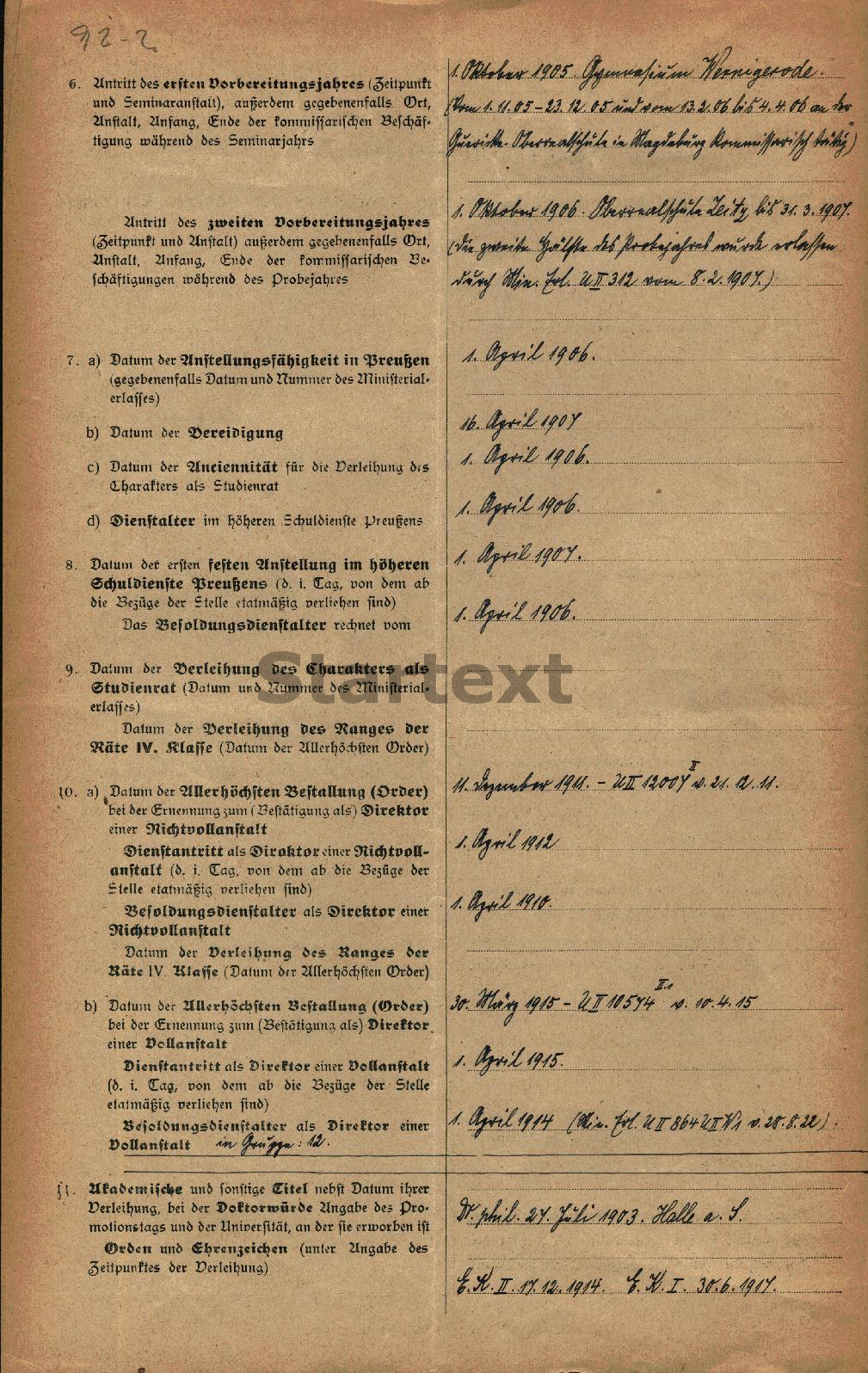 BBF/DIPF/Archiv, Gutachterstelle des BIL - Personalbögen der Lehrer höherer Schulen Preußens