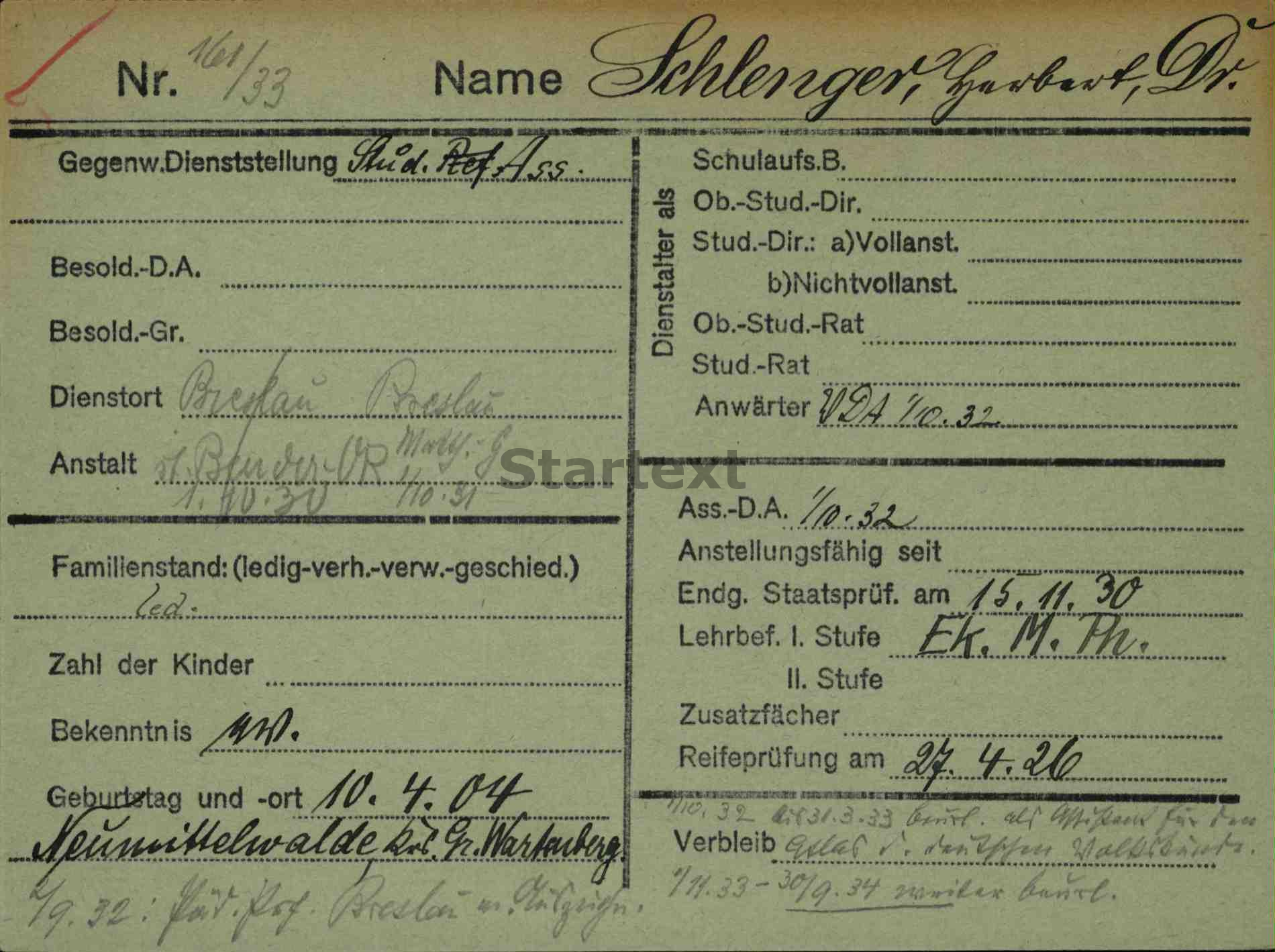 163700 - Schlenger, Herbert * 10.04.1904