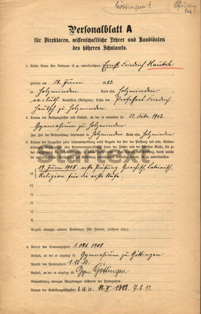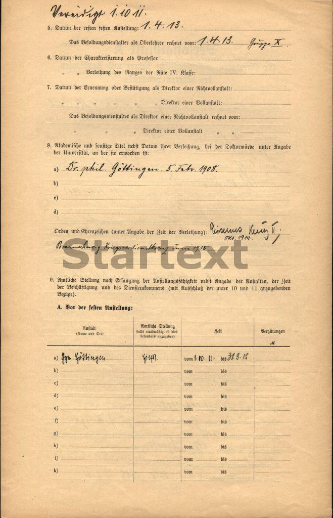 BBF/DIPF/Archiv, Gutachterstelle des BIL - Personalbögen der Lehrer höherer Schulen Preußens