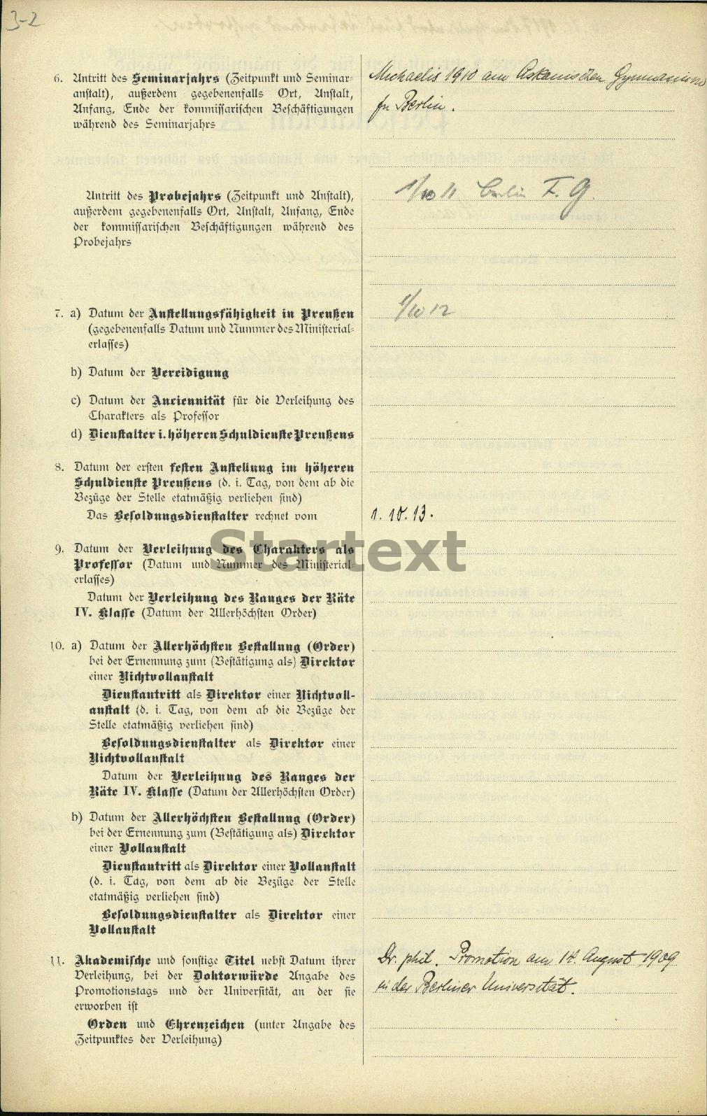 BBF/DIPF/Archiv, Gutachterstelle des BIL - Personalbögen der Lehrer höherer Schulen Preußens