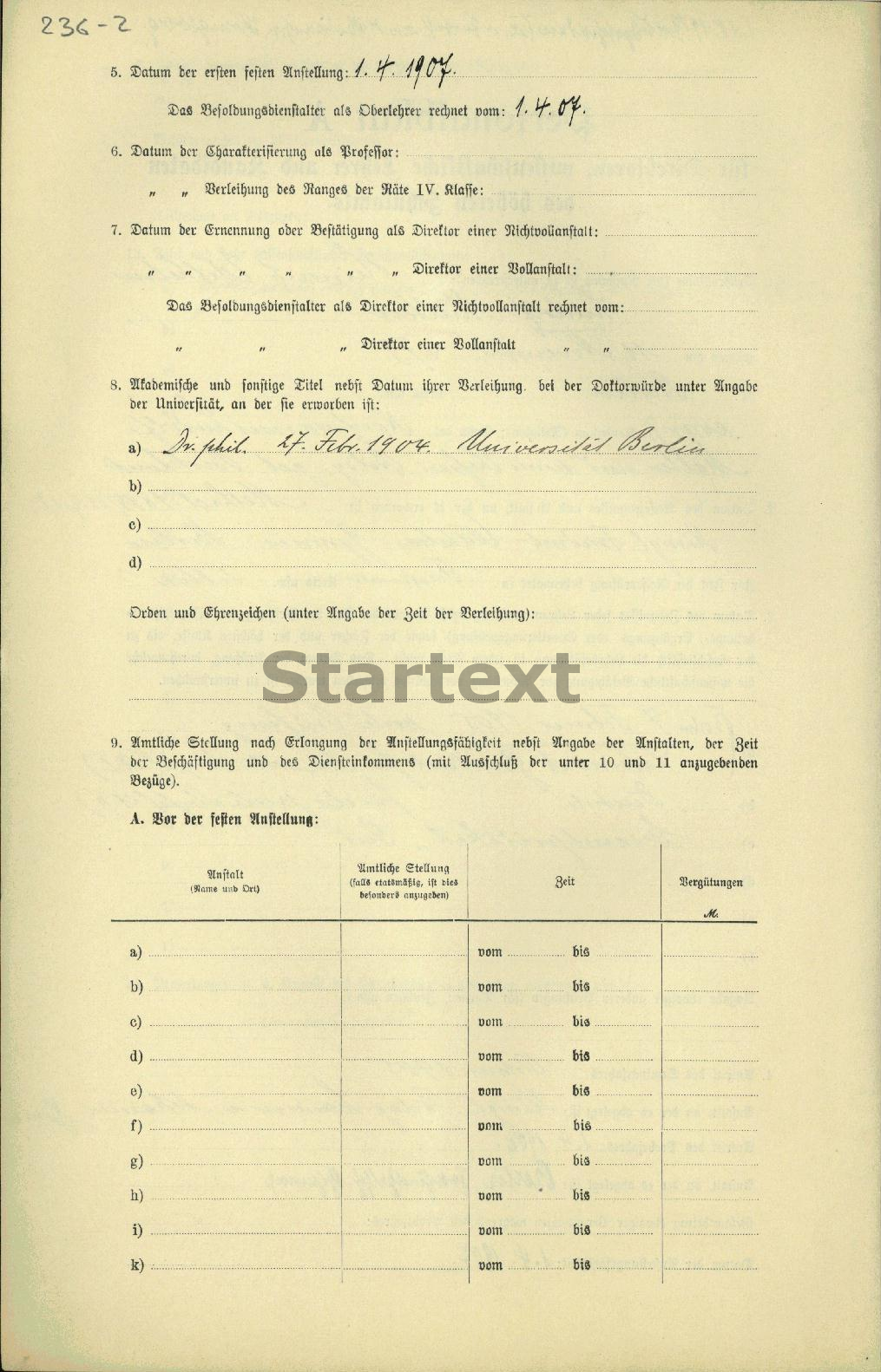 BBF/DIPF/Archiv, Gutachterstelle des BIL - Personalbögen der Lehrer höherer Schulen Preußens