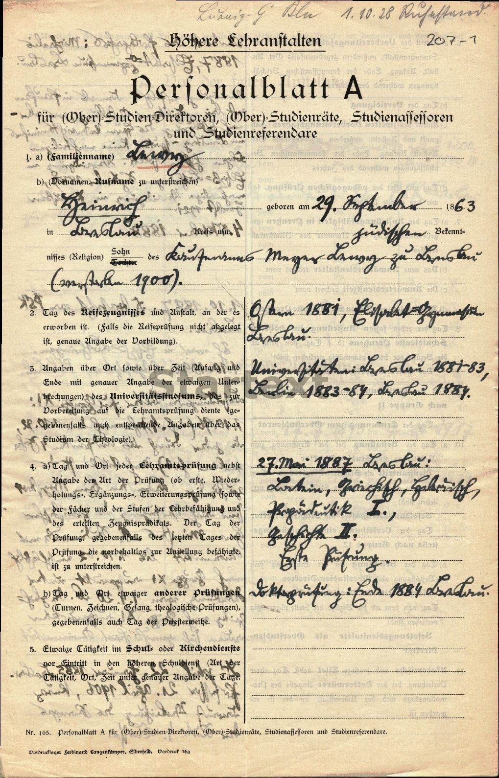 BBF/DIPF/Archiv, Gutachterstelle des BIL - Personalbögen der Lehrer höherer Schulen Preußens