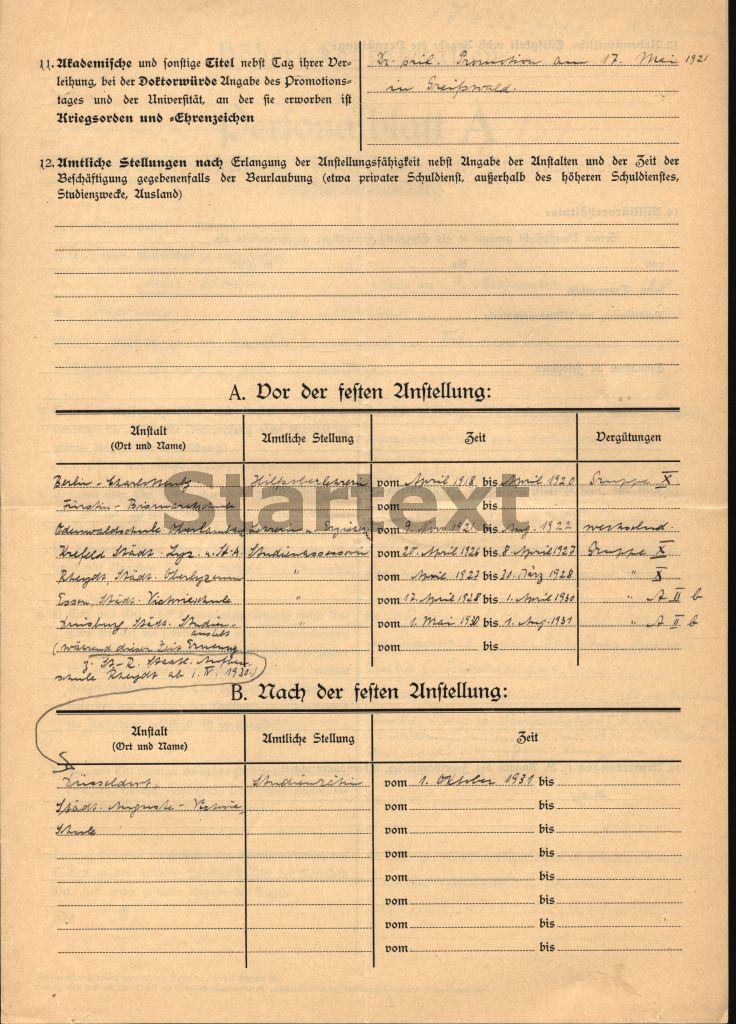 BBF/DIPF/Archiv, Gutachterstelle des BIL - Personalbögen der Lehrer ,höherer Schulen Preußens
