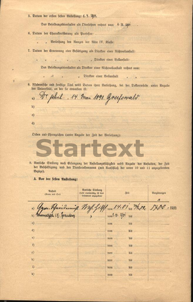 BBF/DIPF/Archiv, Gutachterstelle des BIL - Personalbögen der Lehrer höherer Schulen Preußens