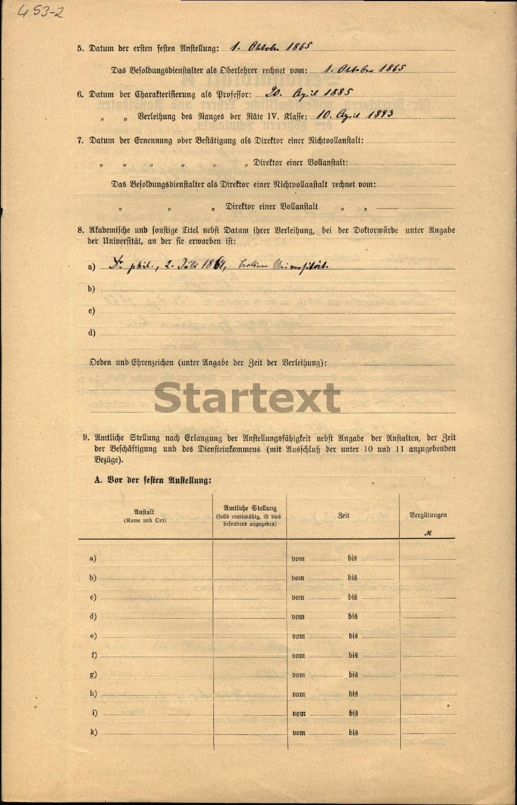 BBF/DIPF/Archiv, Gutachterstelle des BIL - Personalbögen der Lehrer höherer Schulen Preußens