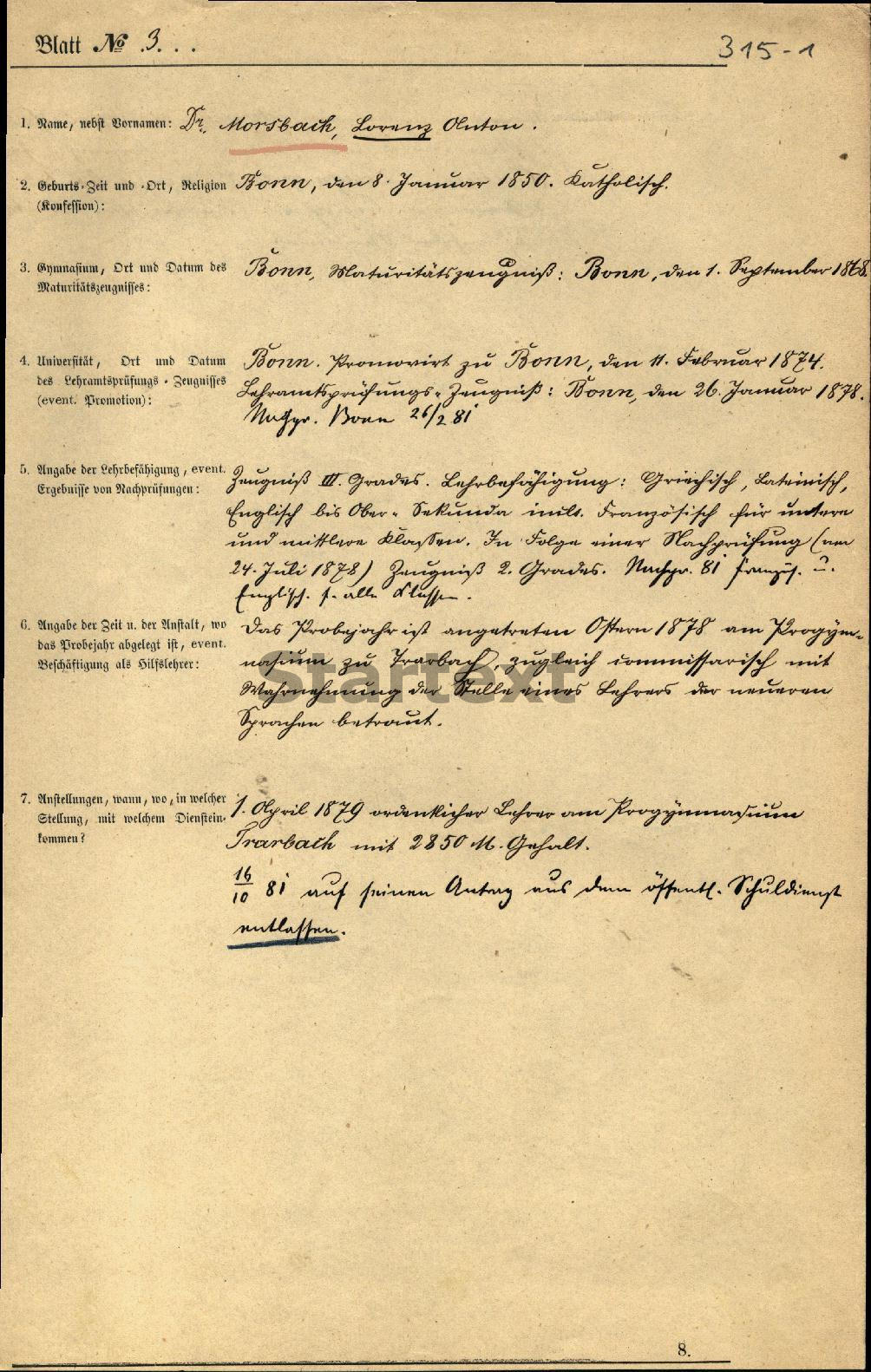 BBF/DIPF/Archiv, Gutachterstelle des BIL - Personalbögen der Lehrer höherer Schulen Preußens