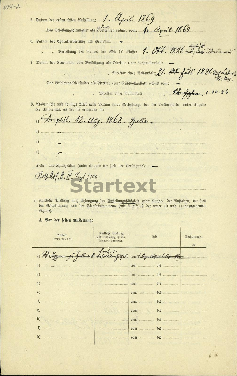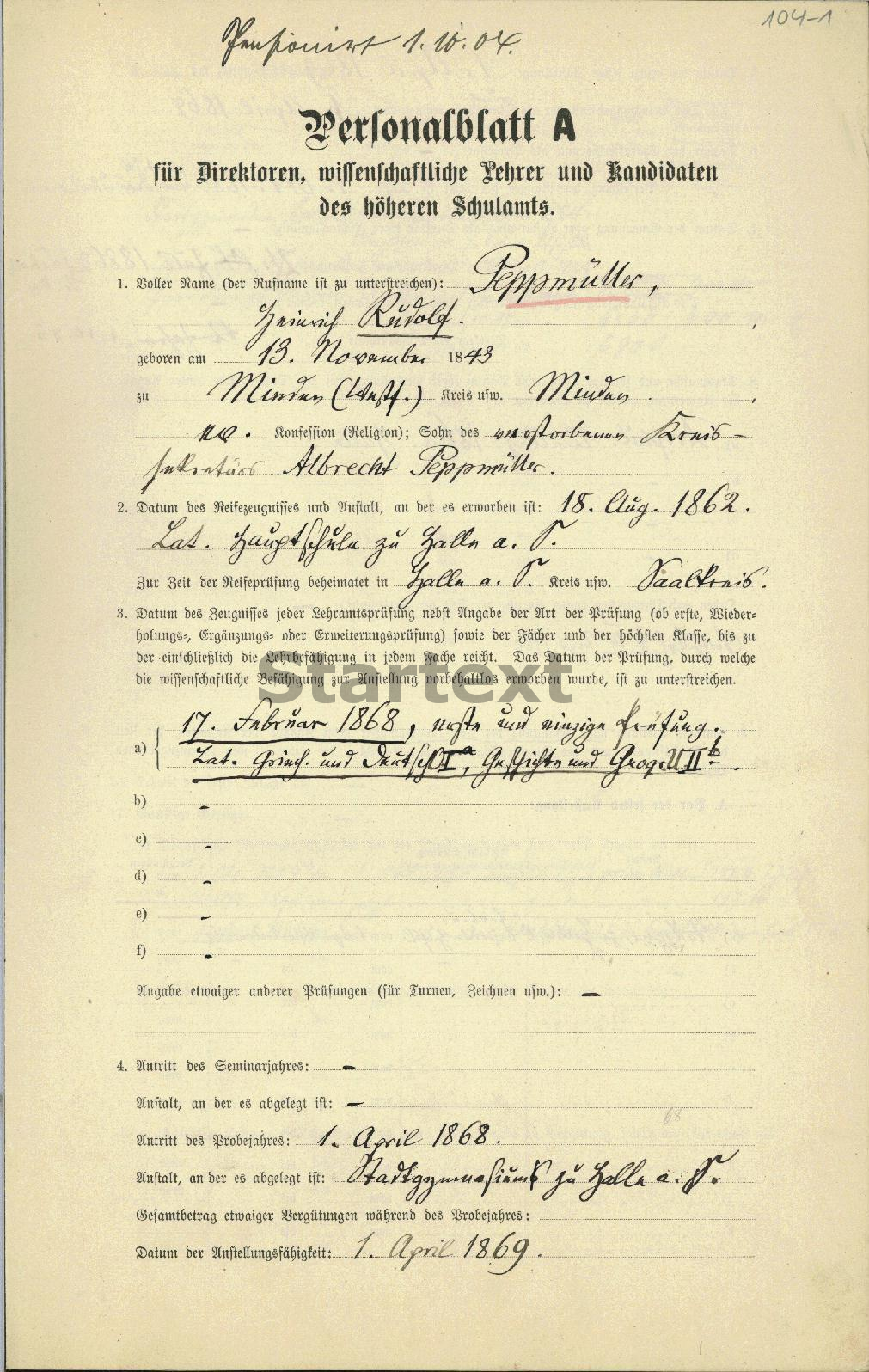 BBF/DIPF/Archiv, Gutachterstelle des BIL - Personalbögen der Lehrer höherer Schulen Preußens