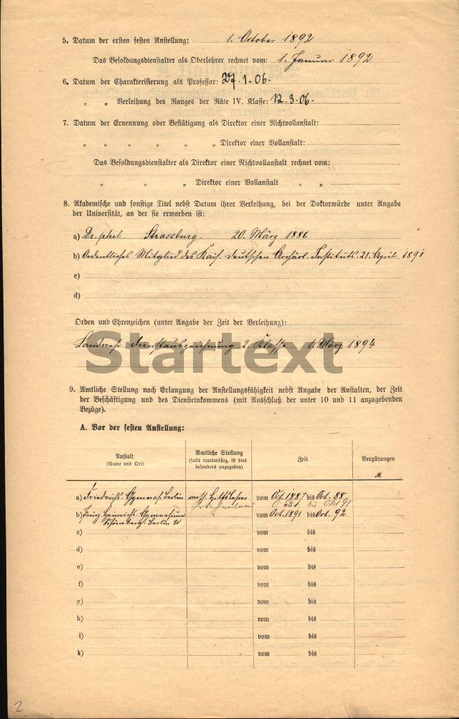 BBF/DIPF/Archiv, Gutachterstelle des BIL - Personalbögen der Lehrer höherer Schulen Preußens