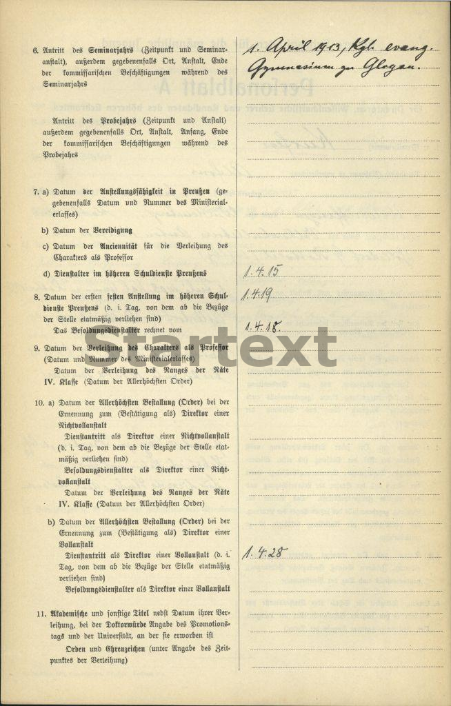 | Bemerkung: | BBF/DIPF/Archiv, Gutachterstelle des BIL - Personalbögen der Lehrer höherer Schulen Preußens |